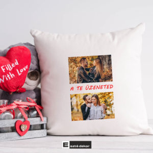 Személyre szabható párna két fotóval és egy szöveggel